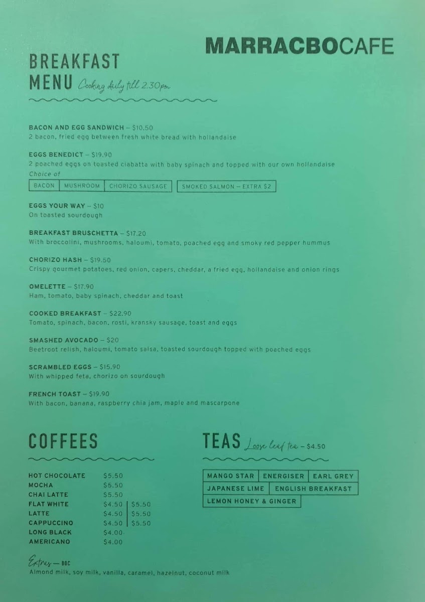 Marracbo Cafe Menu